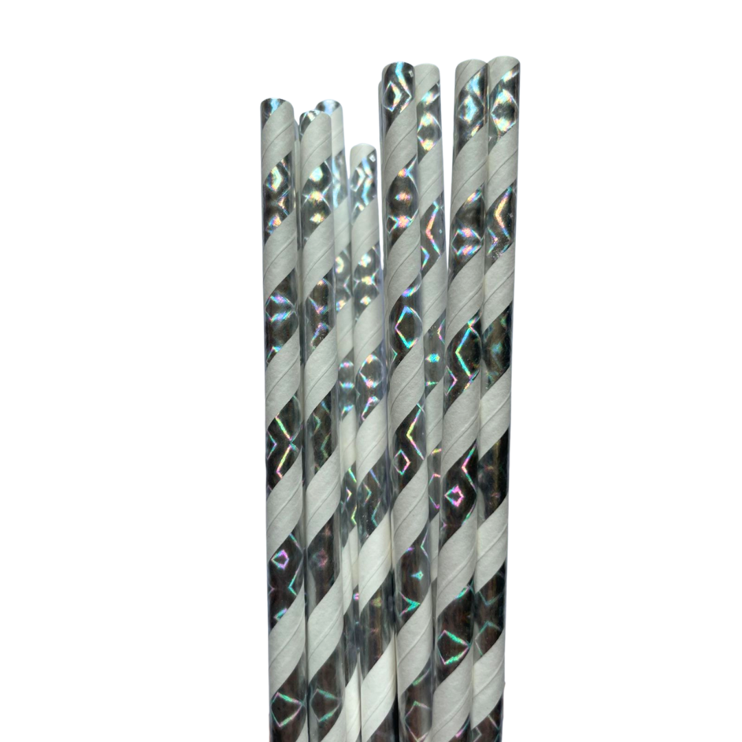 Canudo de Papel Prata Holografico - 12 unidades