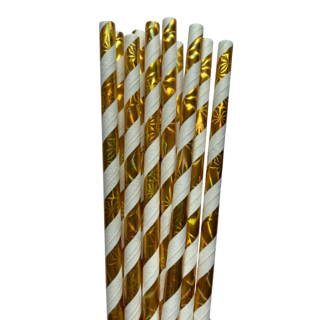 Canudo de Papel Dourado Holografico - 12 unidades