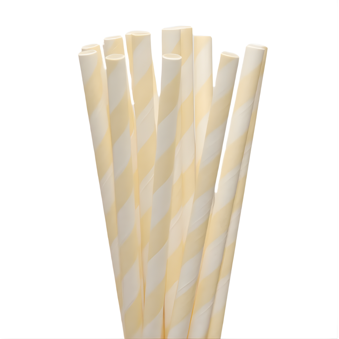 Canudo de Papel Listrado Marfim - 20 Unidades