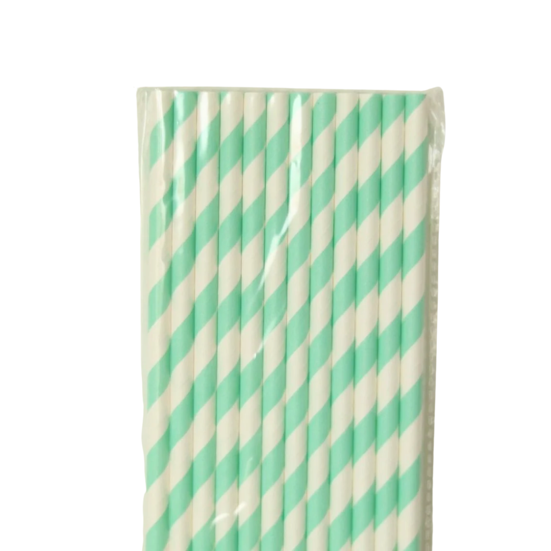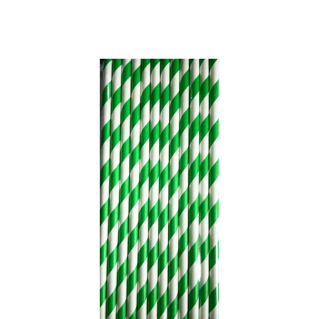 Canudo de Papel Listrado Verde - 12 Unidades