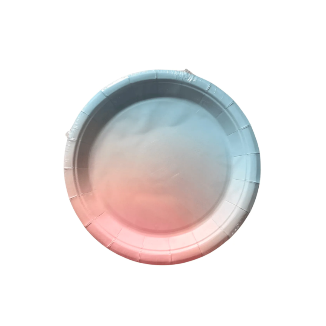 Prato de Papel com 10 unidades - Degrade Azul e Rosa - 18 cm