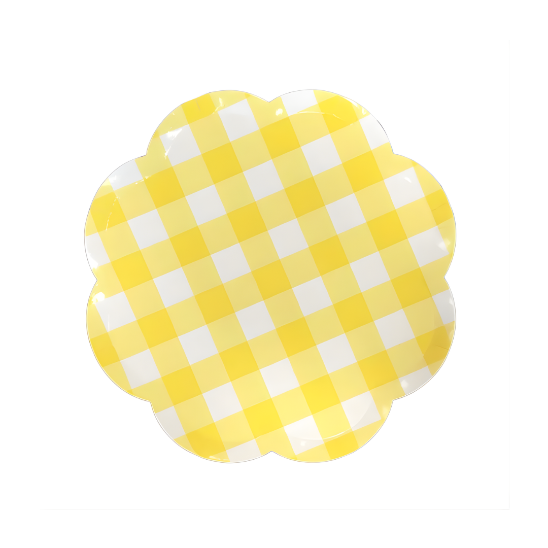 Prato de Papel com 8 unidades - Xadrez Vichy Amarelo - 19 cm