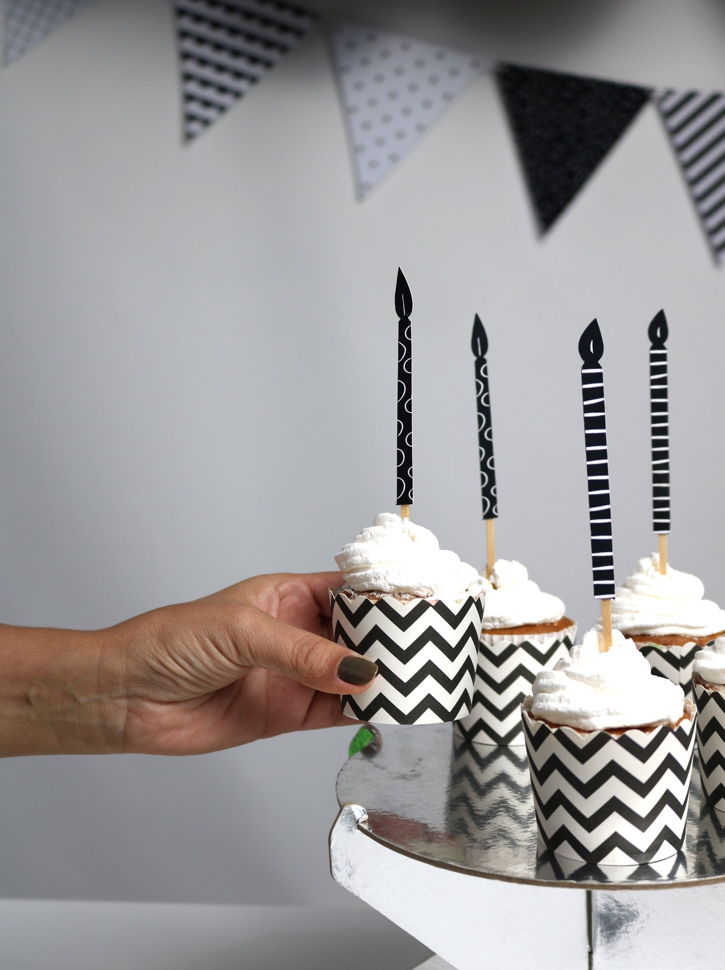 Topos para Cupcake - 10 unidades - Velas - Preto e Branco