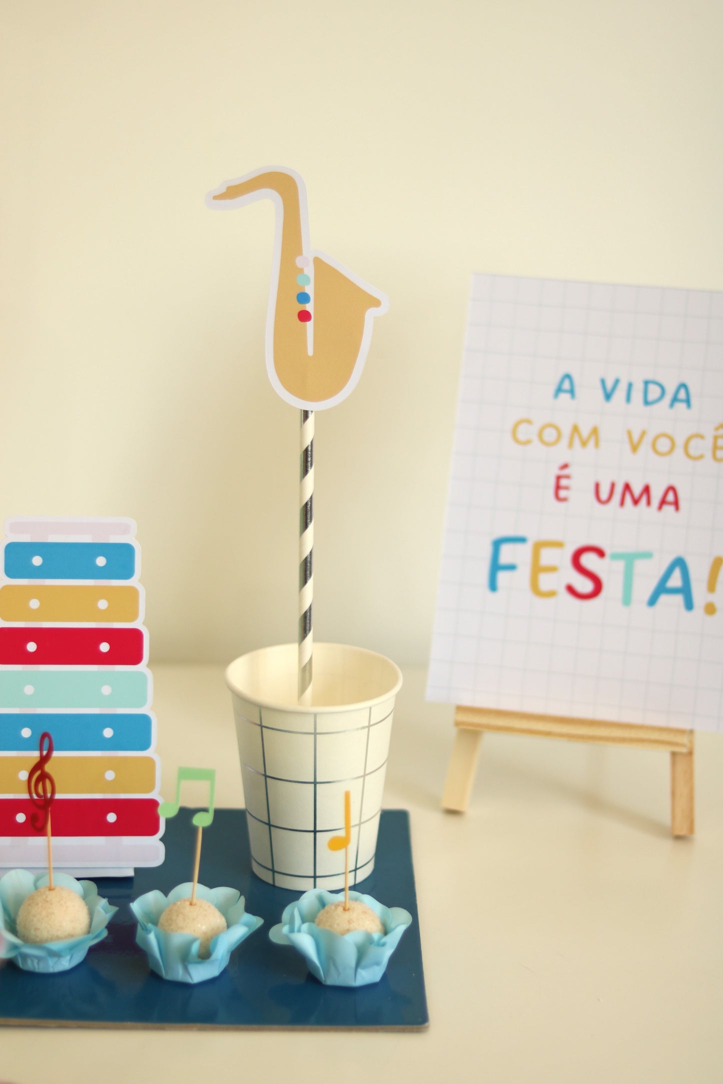 Compostos por canudos com itens decorativos do tema, eles ajudam a criar altura, movimento e destaque do tema, deixando a mesa ainda mais bonita e harmoniosa com o restante da decoração.
