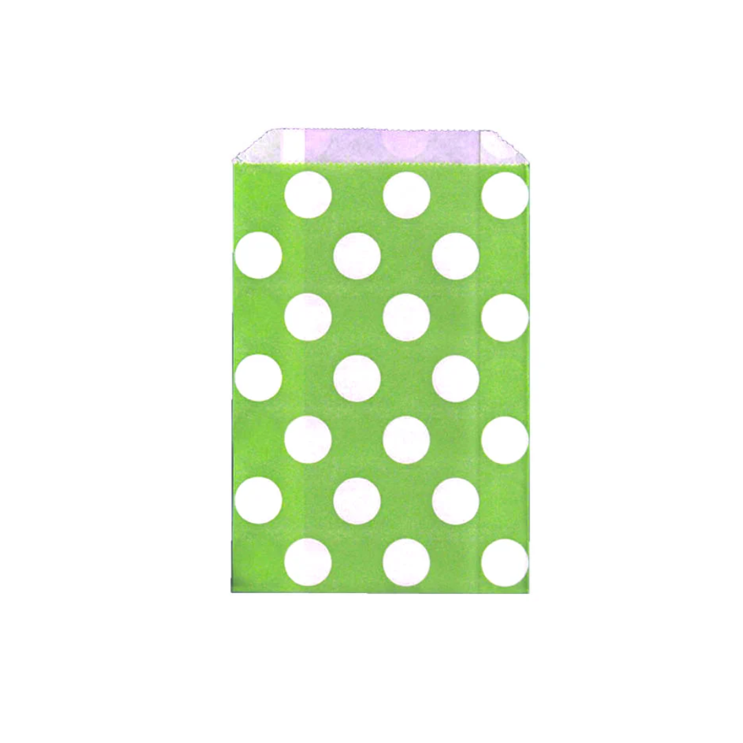 Saquinhos de Papel - 12 unidades - Verde Limão com Bolinhas