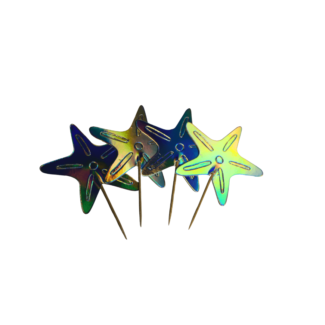 Com acabamento brilhante e efeito nacarado, o pic em formato de estrela do mar é perfeito para dar um toque sofisticado e divertido à decoração de doces e bolos. Uma opção encantadora para festas com tema praiano ou do fundo do mar.